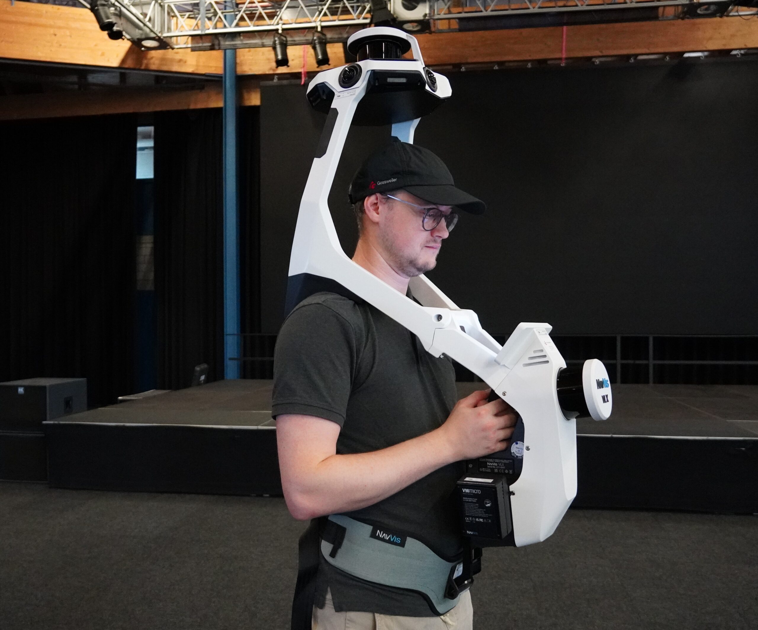 Mit unserem neuen Arbeitsmittel – dem mobilen Laserscanner "NavVis VLX 3" – erfassen wir Innenräume sowie komplexe Gebäudestrukturen schnell und effizient. Somit realisieren wir präzise 3D-Bestandesaufnahmen für Umbau- und Sanierungsprojekte. Ebenso können unsere Geomatiker:innen mit der neulich erworbenen Mini-Drohne, der DJI Mini 4 Pro, wertvolle Aufnahmen und Daten aus der Luft für Oberflächenmodelle gewinnen.